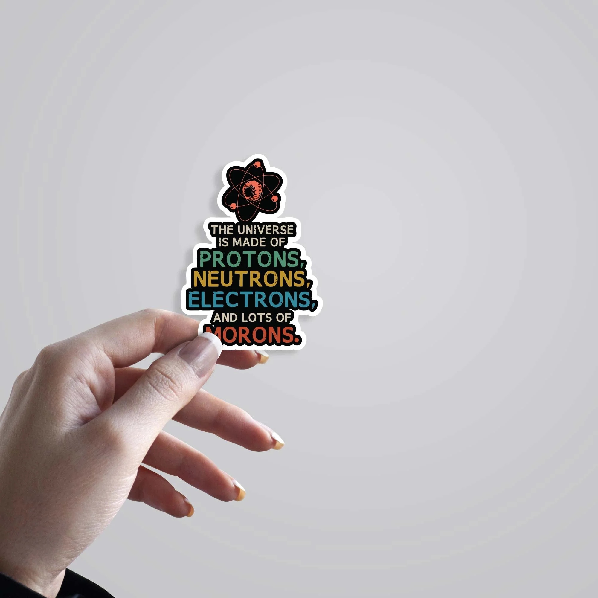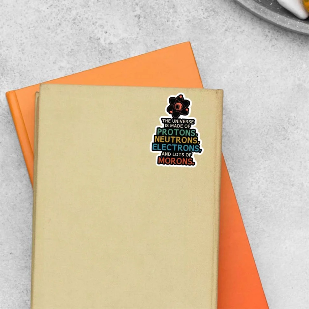 The Universe Is Made Of Lots Of Morons Witty Stickers vinyl sticker, waterproof durable collectible sticker for laptop, phone, bottle, bike, notebook, helmet, and accessories.