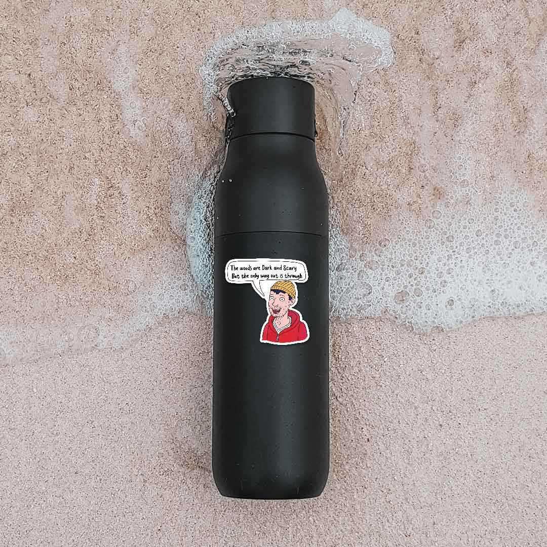 The Wood Are Dark Sticker vinyl sticker, waterproof durable collectible sticker for laptop, phone, bottle, bike, notebook, helmet, and accessories.