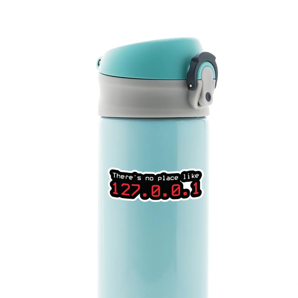 Theres No Place Like 127.0.0.1 Witty Stickers vinyl sticker, waterproof durable collectible sticker for laptop, phone, bottle, bike, notebook, helmet, and accessories.