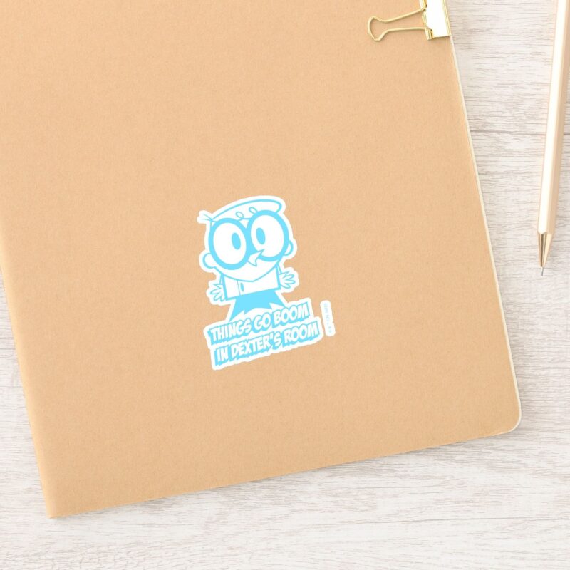Things Go Boom In Dexters Room Sticker vinyl sticker, waterproof durable collectible sticker for laptop, phone, bottle, bike, notebook, helmet, and accessories.