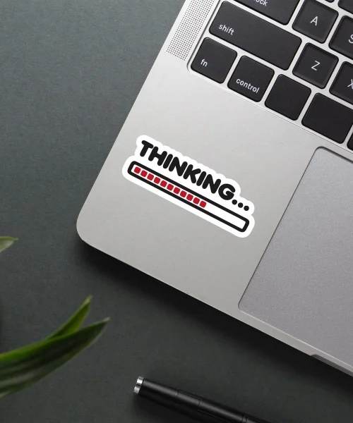 Thinking vinyl sticker, waterproof durable collectible sticker for laptop, phone, bottle, bike, notebook, helmet, and accessories.