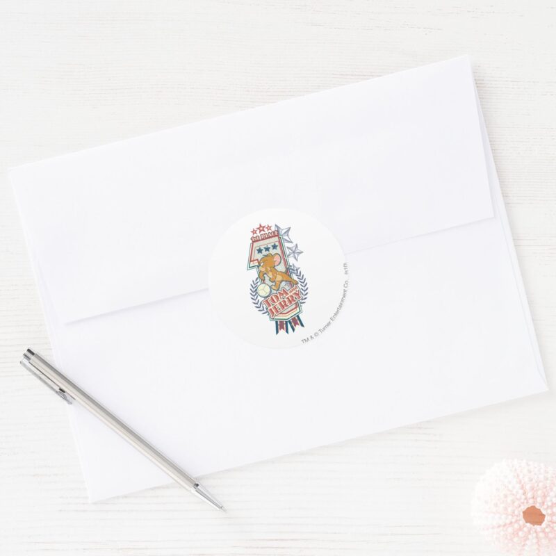 Tom And Jerry 1st Place 2 Classic Round Sticker vinyl sticker, waterproof durable collectible sticker for laptop, phone, bottle, bike, notebook, helmet, and accessories.