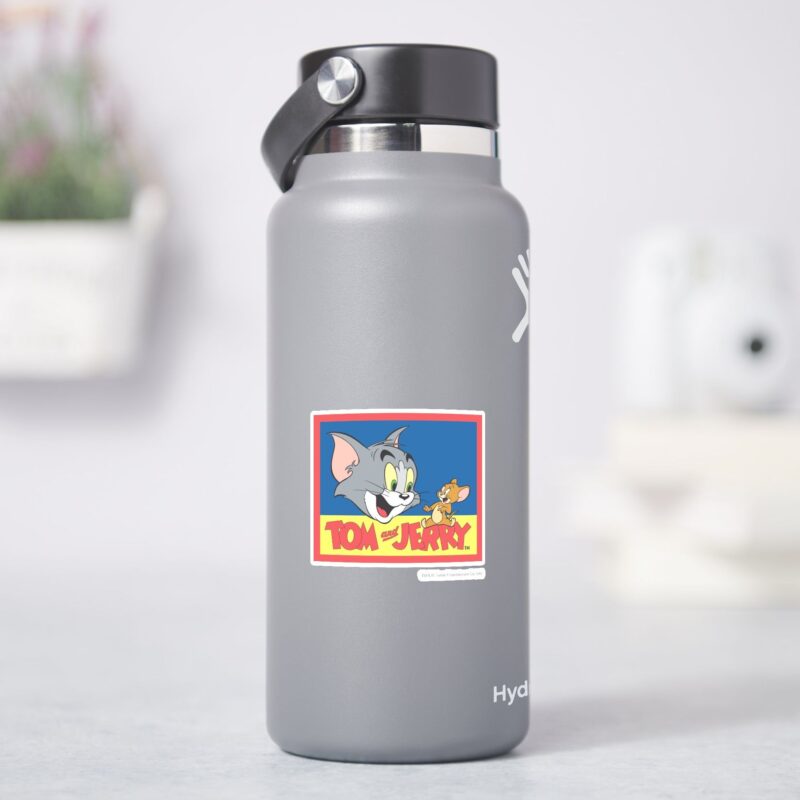 Tom And Jerry Logo Flat Sticker vinyl sticker, waterproof durable collectible sticker for laptop, phone, bottle, bike, notebook, helmet, and accessories.