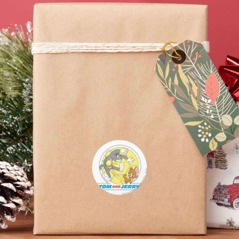 Tom And Jerry Soccer Football 8 Classic Round Sticker vinyl sticker, waterproof durable collectible sticker for laptop, phone, bottle, bike, notebook, helmet, and accessories.