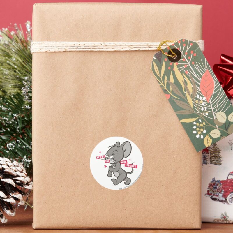 Tom And Jerry Tough Mouse 3 Classic Round Sticker vinyl sticker, waterproof durable collectible sticker for laptop, phone, bottle, bike, notebook, helmet, and accessories.