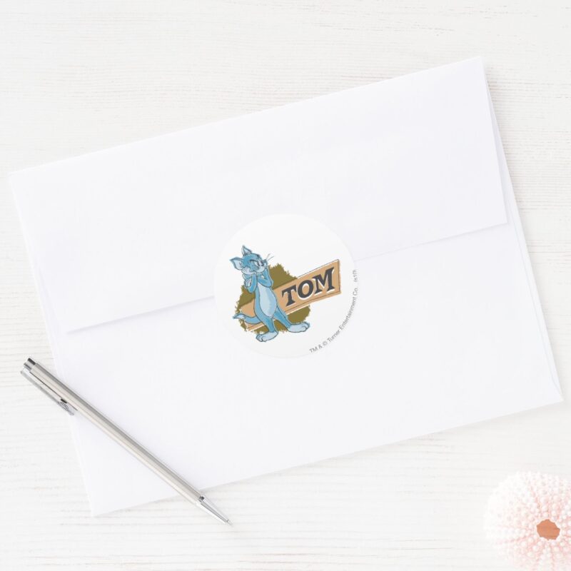 Tom Attitude Logo Classic Round Sticker vinyl sticker, waterproof durable collectible sticker for laptop, phone, bottle, bike, notebook, helmet, and accessories.