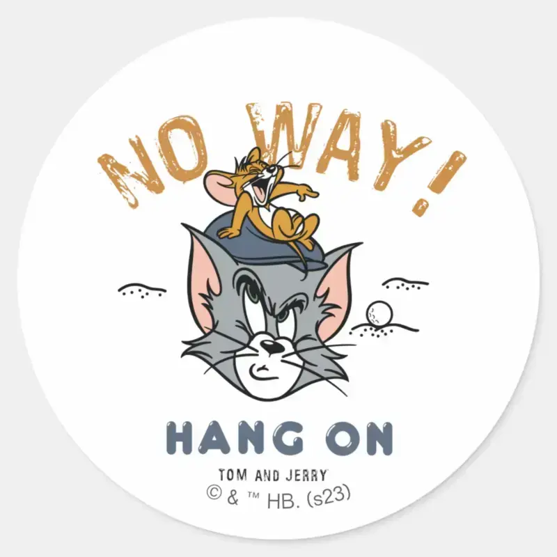 Tom Jerry Golfing No Way Classic Round Sticker vinyl sticker, waterproof durable collectible sticker for laptop, phone, bottle, bike, notebook, helmet, and accessories.