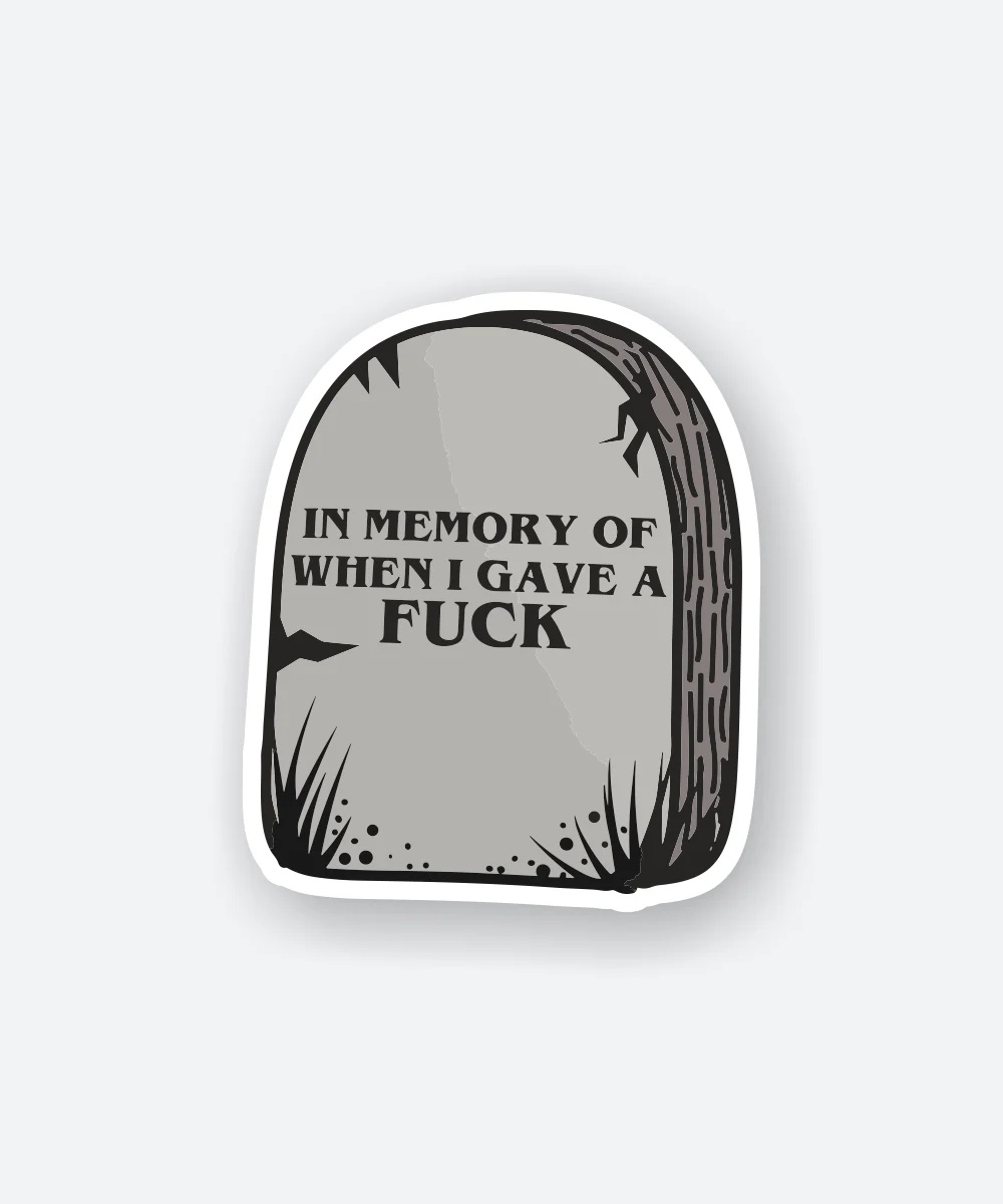 Tomestone Of When I Gave A F43K Sticker vinyl sticker, waterproof durable collectible sticker for laptop, phone, bottle, bike, notebook, helmet, and accessories.