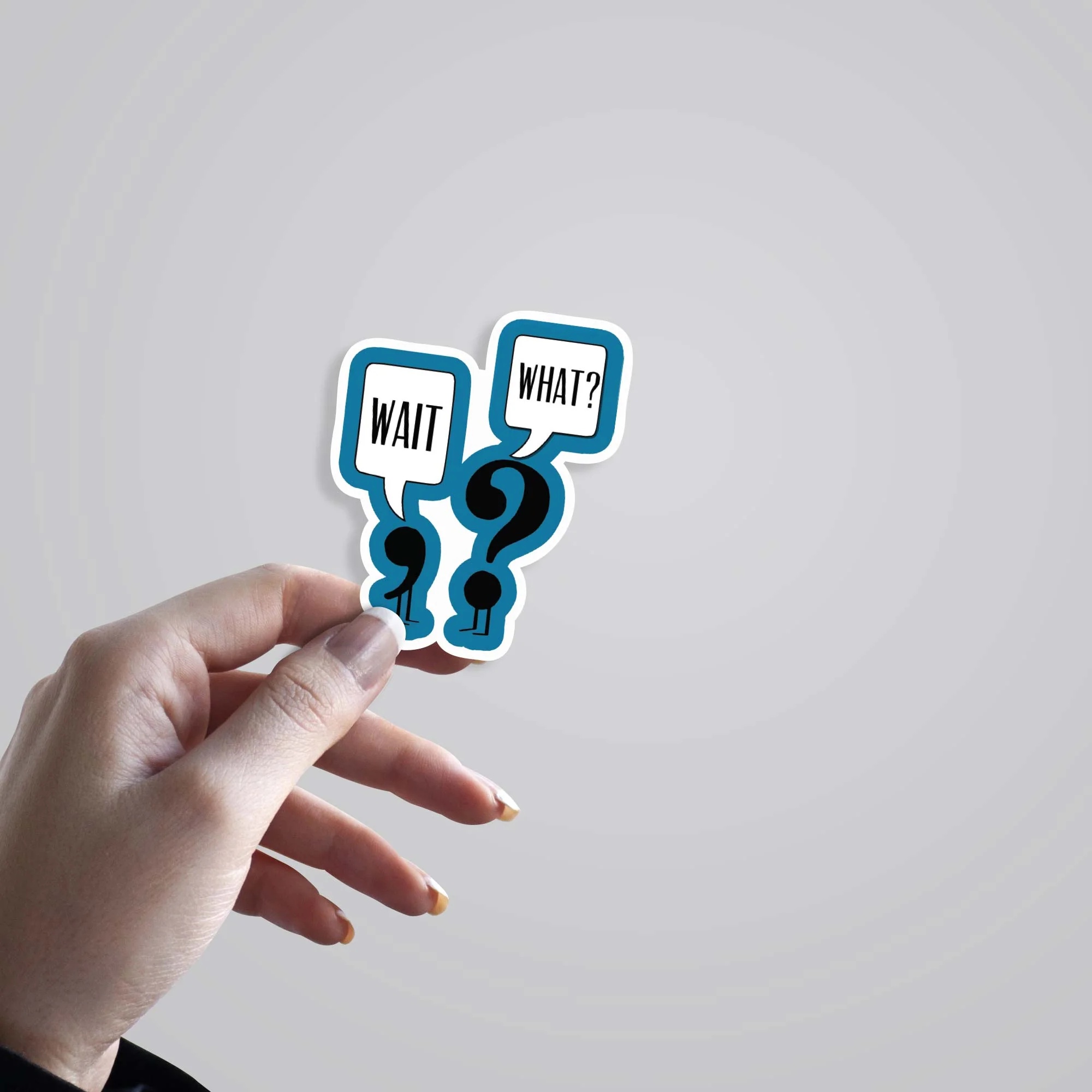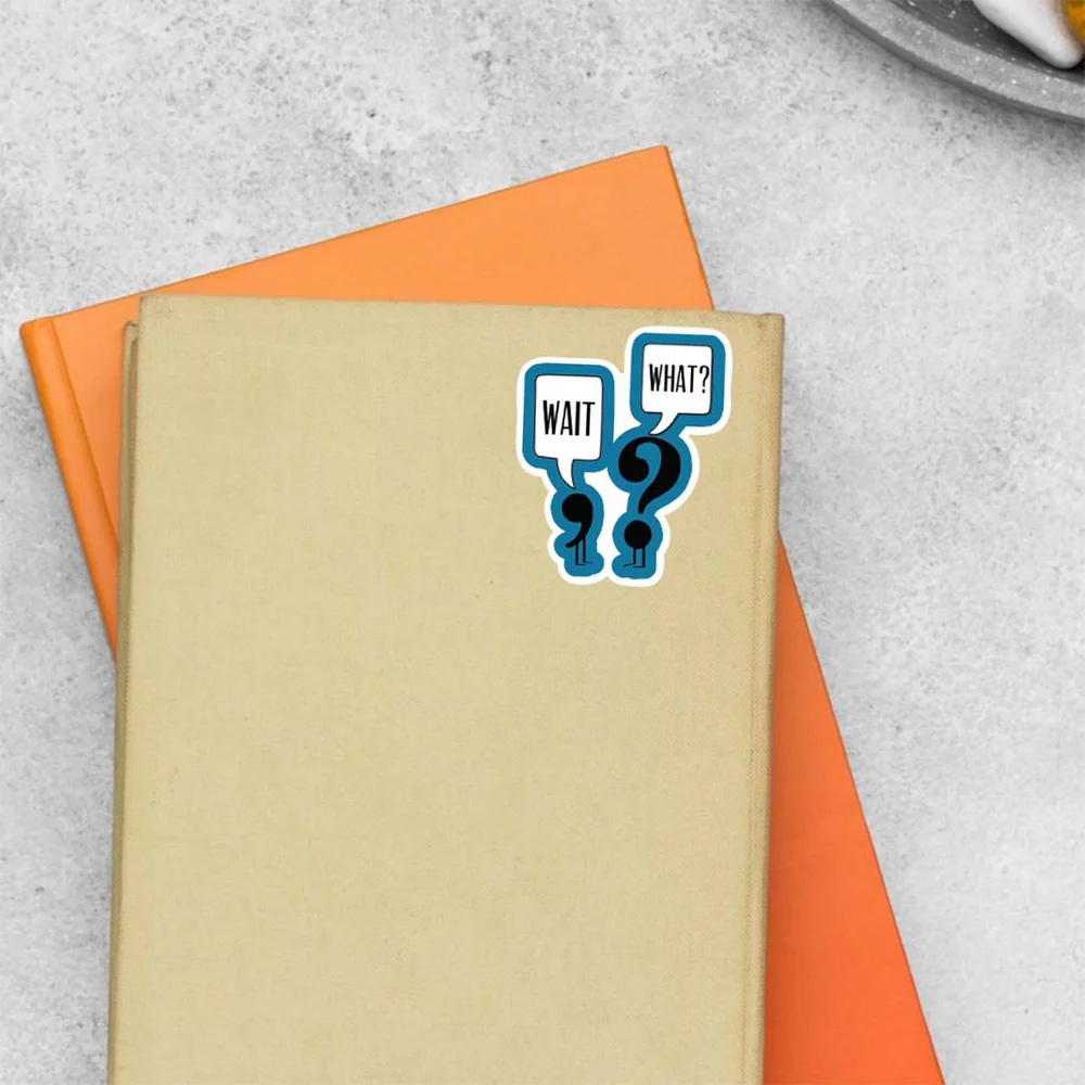 Wait What Witty Stickers vinyl sticker, waterproof durable collectible sticker for laptop, phone, bottle, bike, notebook, helmet, and accessories.