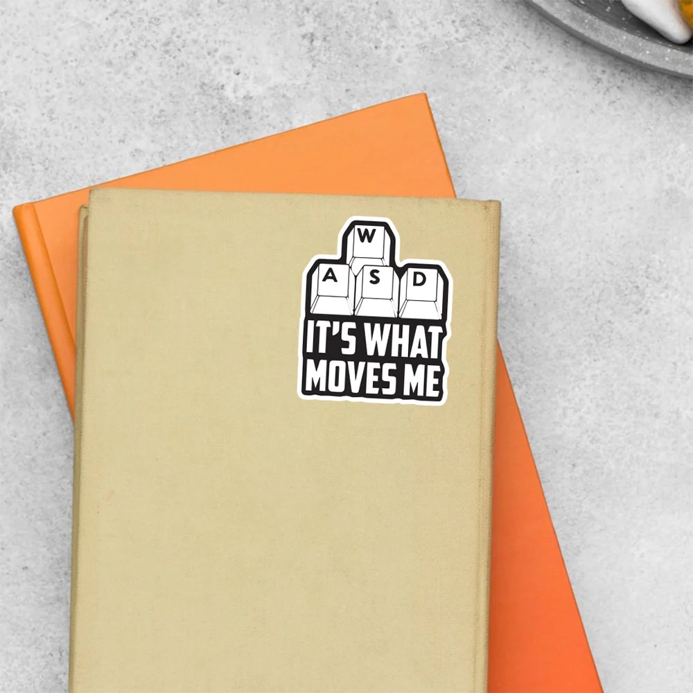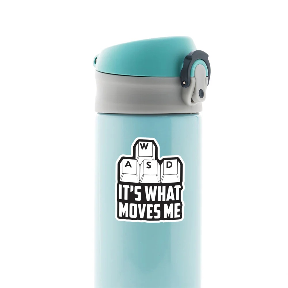 WASD Its What Moves Me Witty Stickers vinyl sticker, waterproof durable collectible sticker for laptop, phone, bottle, bike, notebook, helmet, and accessories.