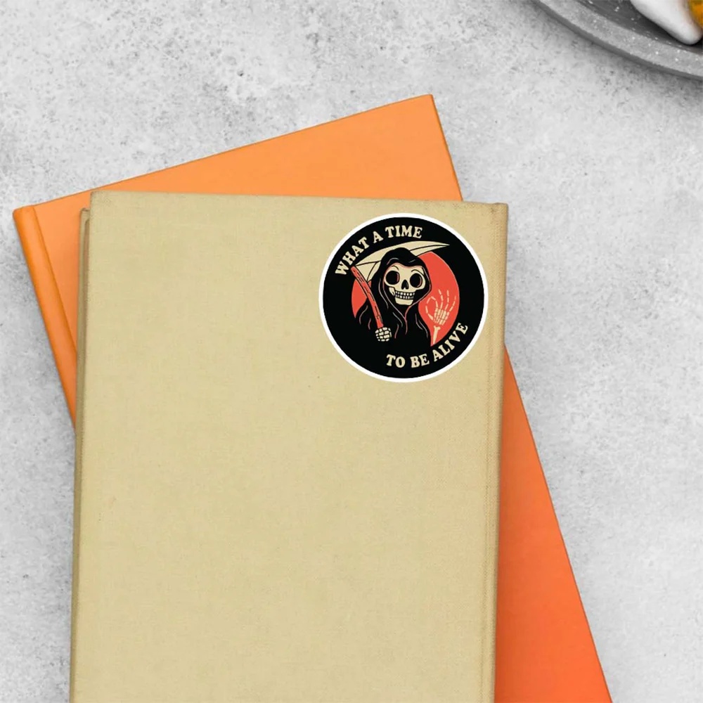What A Time To Be Alive Witty Stickers vinyl sticker, waterproof durable collectible sticker for laptop, phone, bottle, bike, notebook, helmet, and accessories.