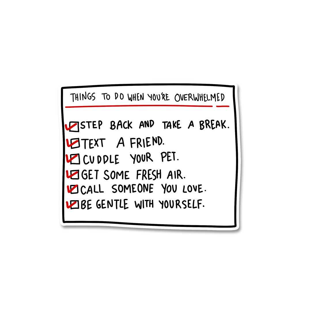 When Youre Overwhlemed Sticker vinyl sticker, waterproof durable collectible sticker for laptop, phone, bottle, bike, notebook, helmet, and accessories.