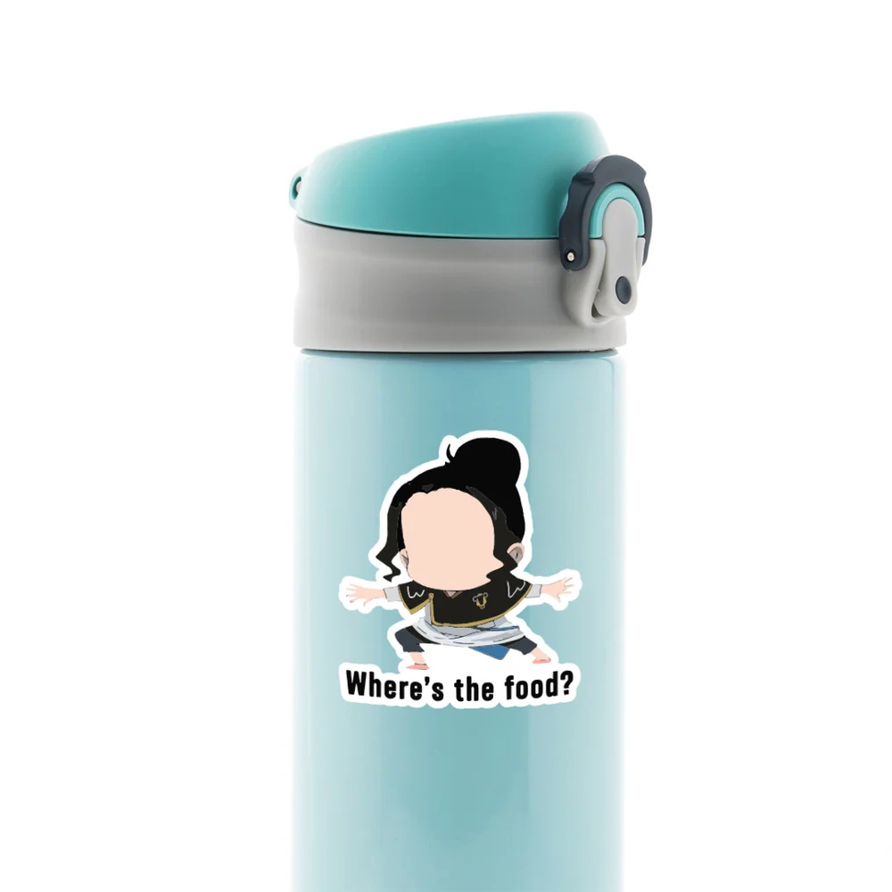 Wheres The Food Anime Stickers vinyl sticker, waterproof durable collectible sticker for laptop, phone, bottle, bike, notebook, helmet, and accessories.