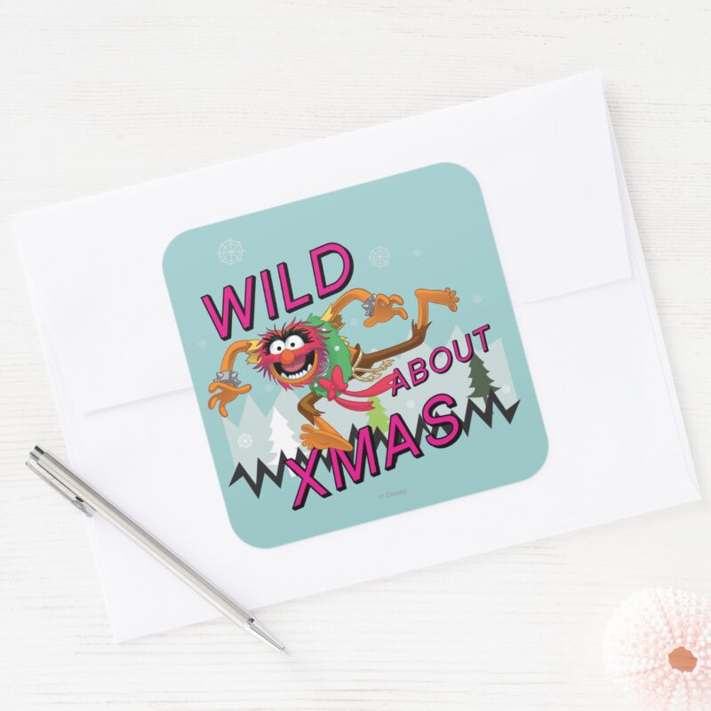 Wild About Xmas Square Sticker vinyl sticker, waterproof durable collectible sticker for laptop, phone, bottle, bike, notebook, helmet, and accessories.