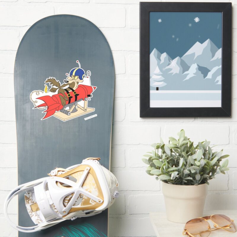 WILE E. COYOTE™ Launching Red Rocket Sticker vinyl sticker, waterproof durable collectible sticker for laptop, phone, bottle, bike, notebook, helmet, and accessories.