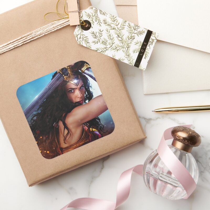 Wonder Woman Blocking With Sword Square Sticker