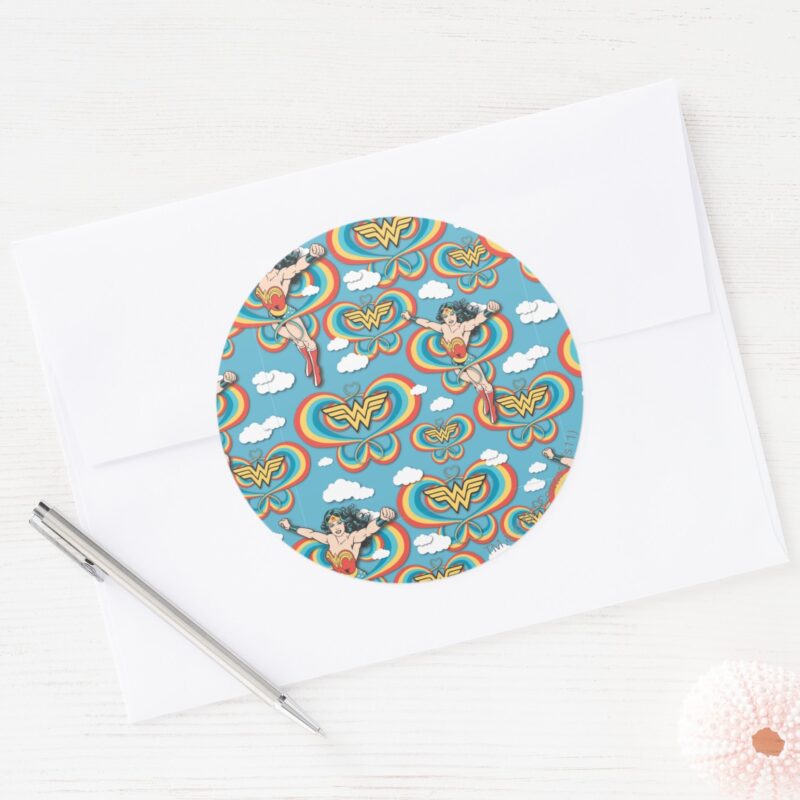 Wonder Woman Flying High Pattern Classic Round Sticker