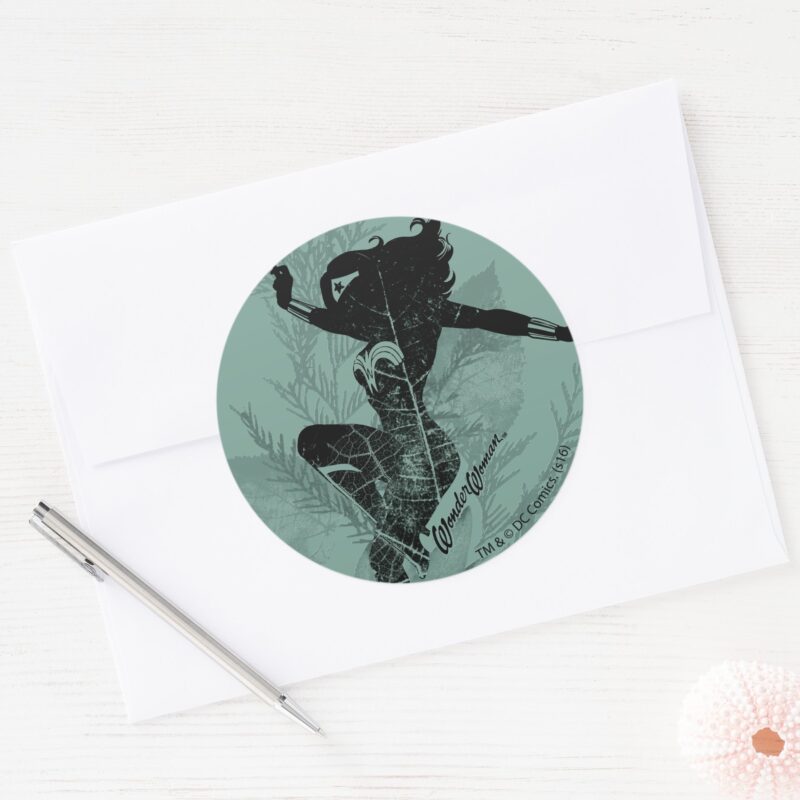 Wonder Woman Landing Foliage Graphic Classic Round Sticker