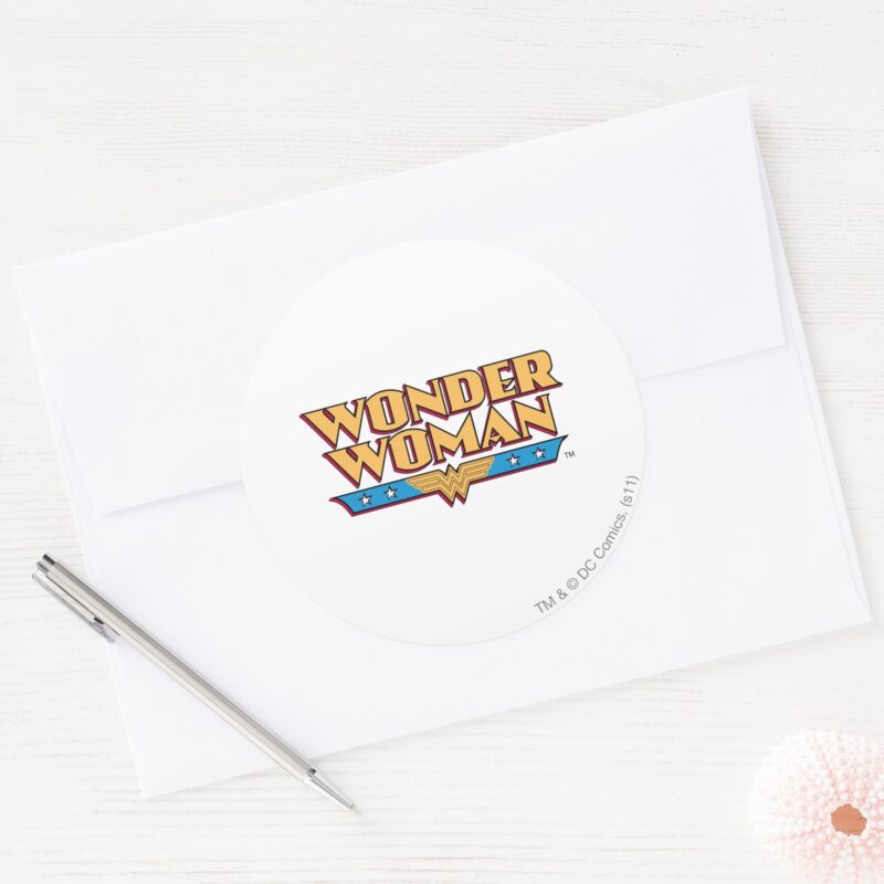 Wonder Woman Logo 2 Classic Round Sticker vinyl sticker, waterproof durable collectible sticker for laptop, phone, bottle, bike, notebook, helmet, and accessories.