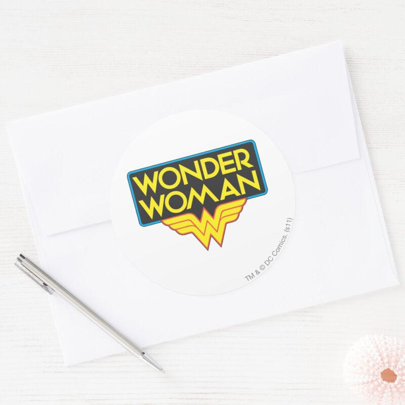 Wonder Woman Logo 3 Classic Round Sticker vinyl sticker, waterproof durable collectible sticker for laptop, phone, bottle, bike, notebook, helmet, and accessories.