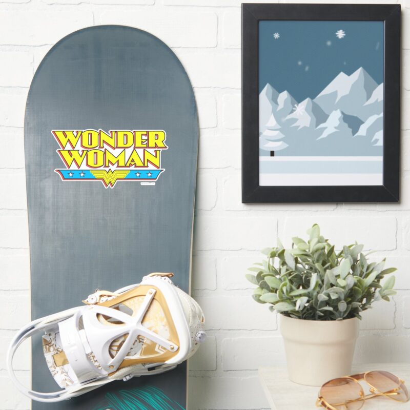 Wonder Woman Name And Logo Sticker vinyl sticker, waterproof durable collectible sticker for laptop, phone, bottle, bike, notebook, helmet, and accessories.