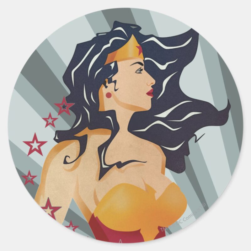 Wonder Woman Retro Profile Sunburst Classic Round Sticker