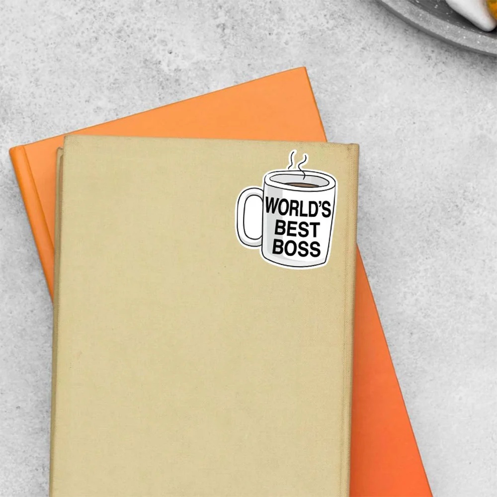 Worlds Best Boss Cup TV Shows Stickers vinyl sticker, waterproof durable collectible sticker for laptop, phone, bottle, bike, notebook, helmet, and accessories.