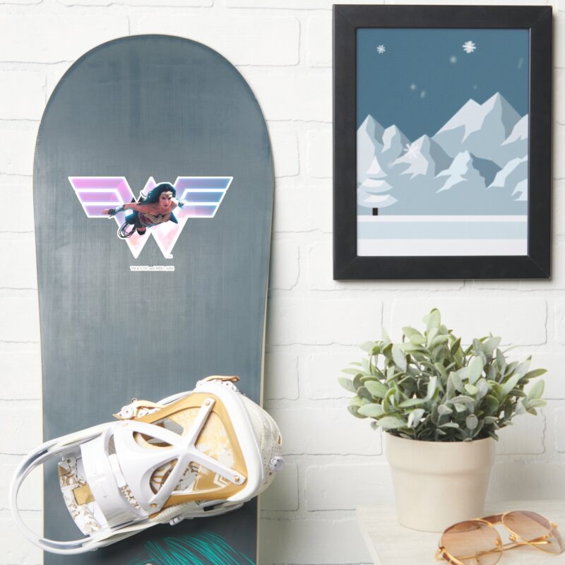 WW84 Wonder Woman Flying Lo Fi Pastel Graphic Sticker vinyl sticker, waterproof durable collectible sticker for laptop, phone, bottle, bike, notebook, helmet, and accessories.