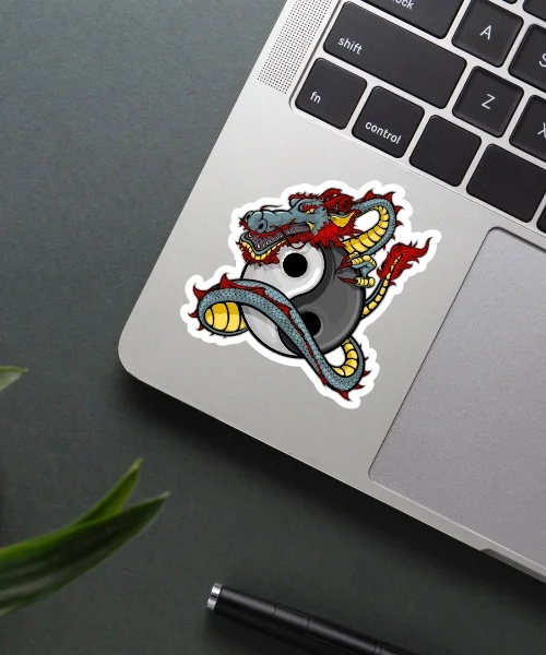 Yin Yang Dragon Sticker vinyl sticker, waterproof durable collectible sticker for laptop, phone, bottle, bike, notebook, helmet, and accessories.