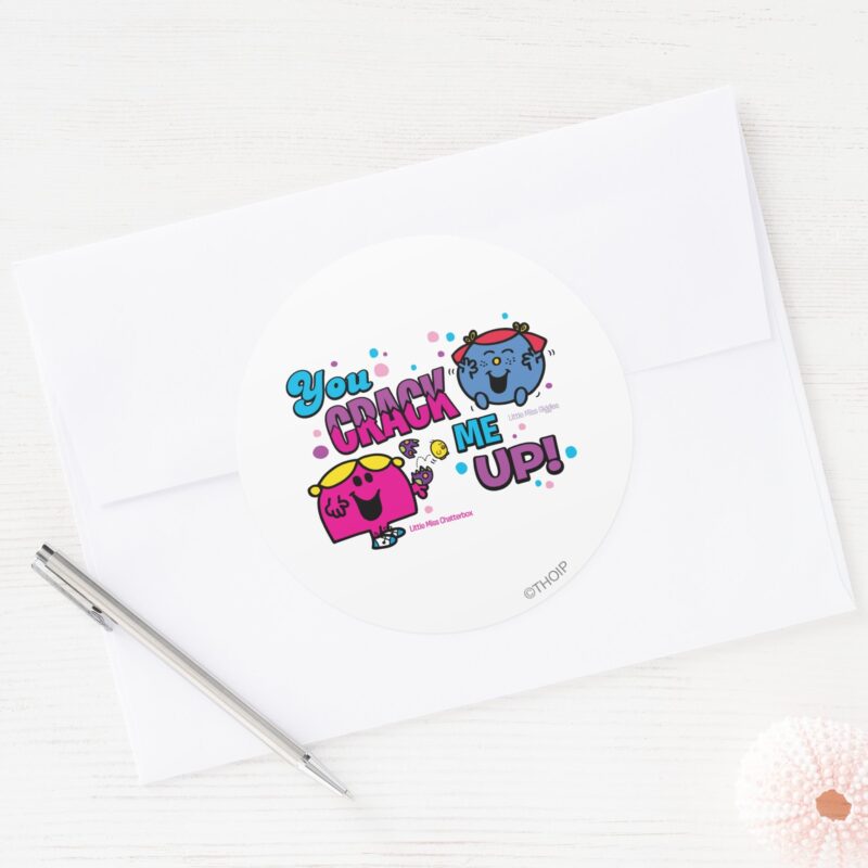 You Crack Me Up Classic Round Sticker vinyl sticker, waterproof durable collectible sticker for laptop, phone, bottle, bike, notebook, helmet, and accessories.