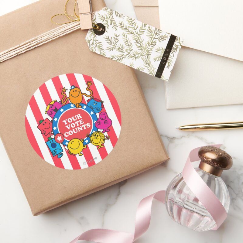 Your Vote Counts Classic Round Sticker vinyl sticker, waterproof durable collectible sticker for laptop, phone, bottle, bike, notebook, helmet, and accessories.
