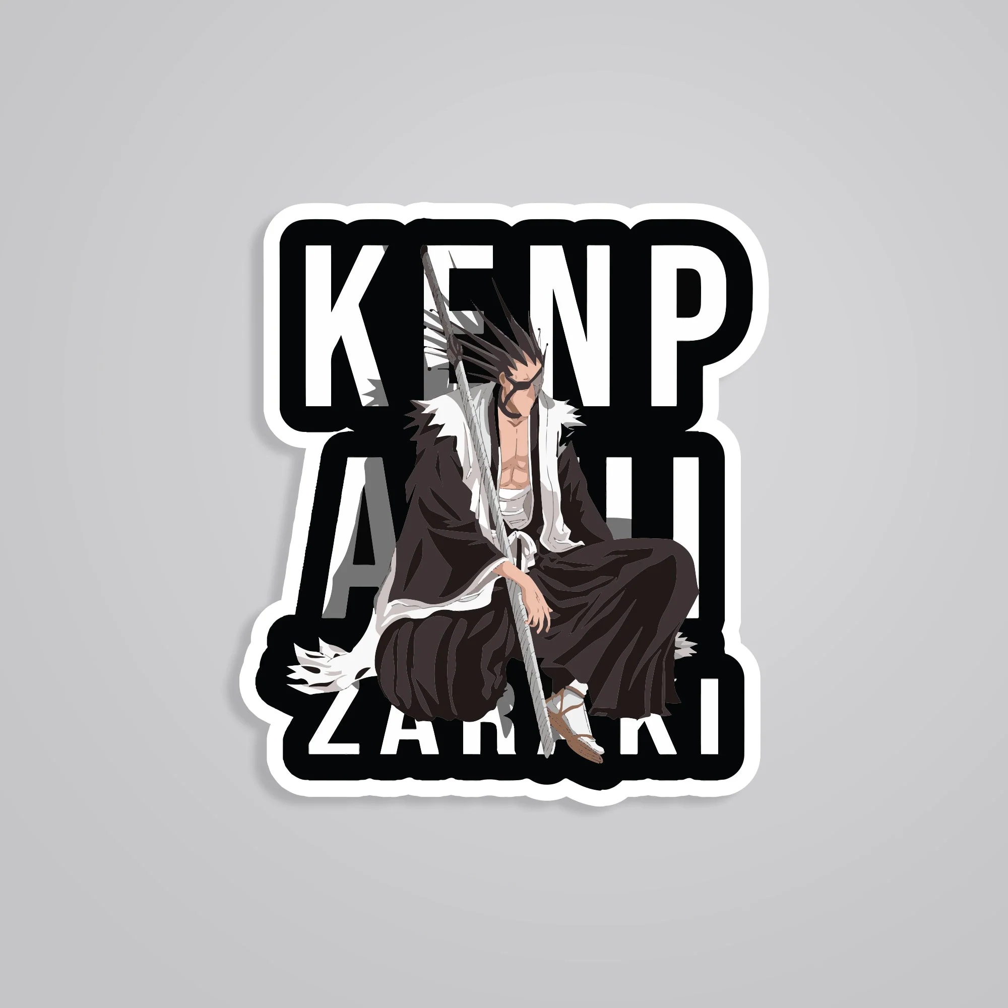 Zaraki Kenpachi Anime Stickers vinyl sticker, waterproof durable collectible sticker for laptop, phone, bottle, bike, notebook, helmet, and accessories.