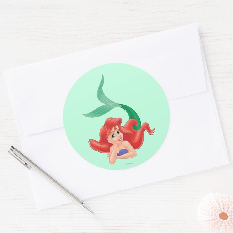 Ariel Laying Down Classic Round Sticker vinyl sticker, waterproof durable collectible sticker for laptop, phone, bottle, bike, notebook, helmet, and accessories.