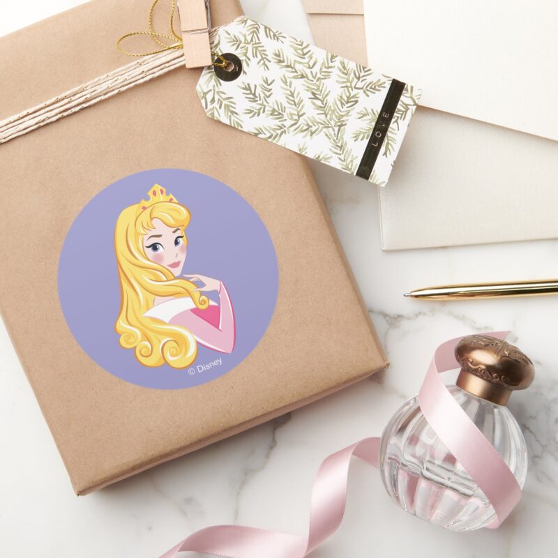 Aurora Fairest Of Them All Classic Round Sticker vinyl sticker, waterproof durable collectible sticker for laptop, phone, bottle, bike, notebook, helmet, and accessories.
