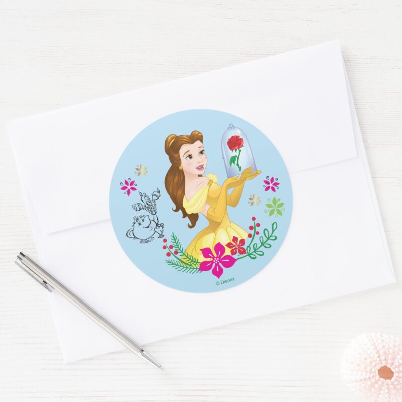 Belle Belle And Her Christmas Rose Classic Round Sticker
