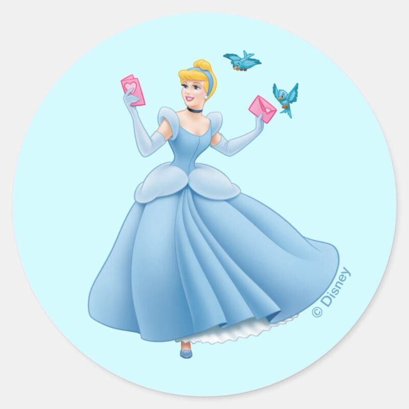 Cinderella And Birds Classic Round Sticker vinyl sticker, waterproof durable collectible sticker for laptop, phone, bottle, bike, notebook, helmet, and accessories.