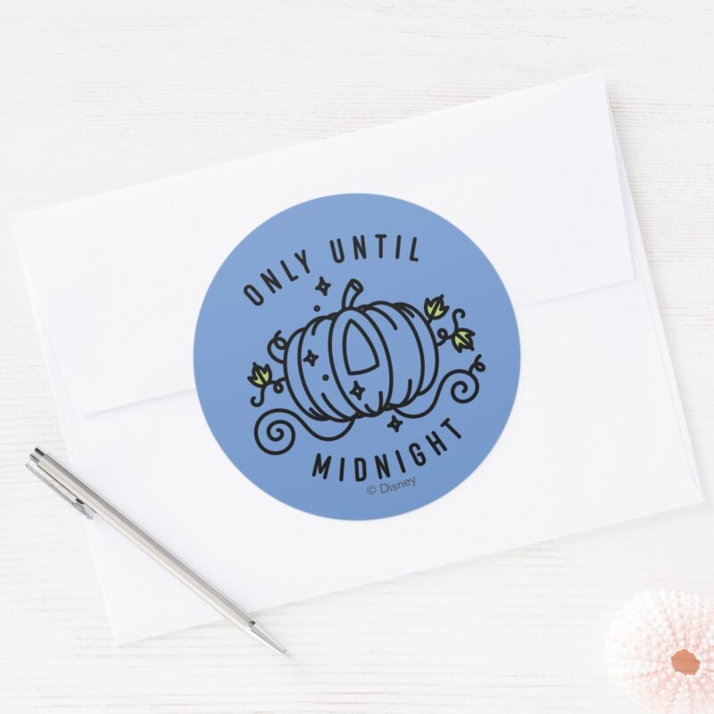 Cinderella Pumpkin Carriage Only Until Midnight Classic Round Sticker vinyl sticker, waterproof durable collectible sticker for laptop, phone, bottle, bike, notebook, helmet, and accessories.