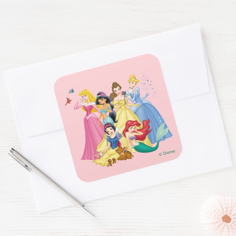 Disney Princess Birds And Animals Square Sticker vinyl sticker, waterproof durable collectible sticker for laptop, phone, bottle, bike, notebook, helmet, and accessories.