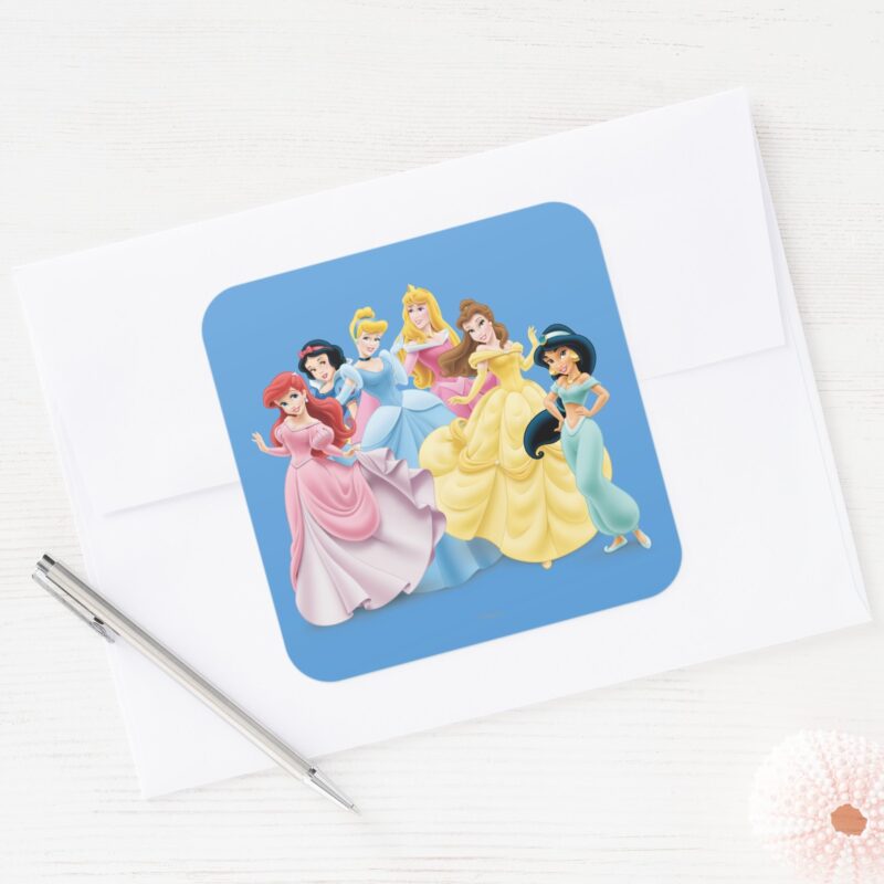 Disney Princess Dressed To Impress Square Sticker vinyl sticker, waterproof durable collectible sticker for laptop, phone, bottle, bike, notebook, helmet, and accessories.