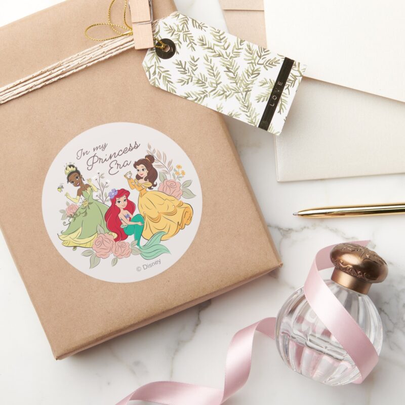 In My Princess Era Classic Round Sticker vinyl sticker, waterproof durable collectible sticker for laptop, phone, bottle, bike, notebook, helmet, and accessories.