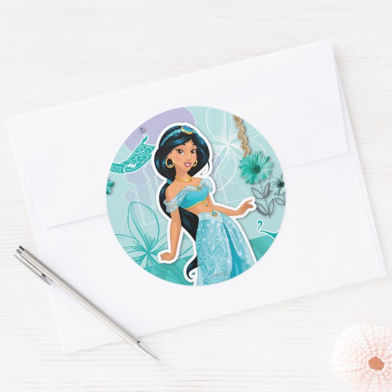 Jasmine Courageous Classic Round Sticker vinyl sticker, waterproof durable collectible sticker for laptop, phone, bottle, bike, notebook, helmet, and accessories.