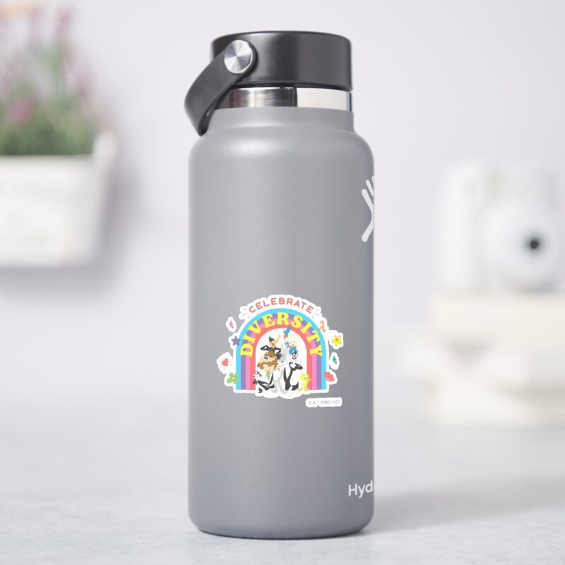 LOONEY TUNES™ Celebrate Diversity Pride Rainbow Sticker vinyl sticker, waterproof durable collectible sticker for laptop, phone, bottle, bike, notebook, helmet, and accessories.