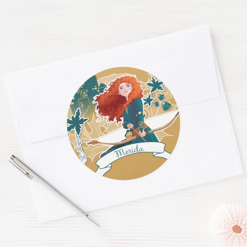 Merida Brave Princess Classic Round Sticker vinyl sticker, waterproof durable collectible sticker for laptop, phone, bottle, bike, notebook, helmet, and accessories.