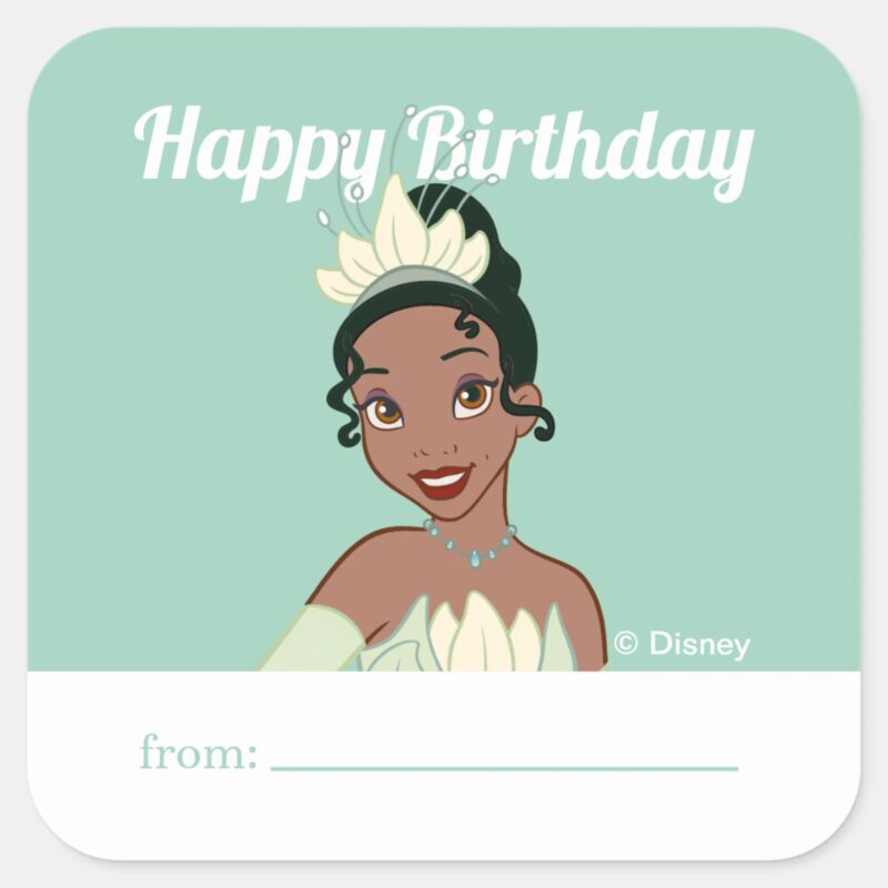 Princess Tiana A Gift From Birthday Square Sticker vinyl sticker, waterproof durable collectible sticker for laptop, phone, bottle, bike, notebook, helmet, and accessories.