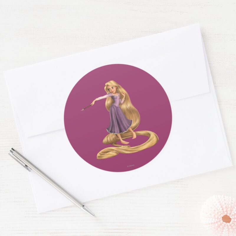 Rapunzel With Paintbrush 2 Classic Round Sticker vinyl sticker, waterproof durable collectible sticker for laptop, phone, bottle, bike, notebook, helmet, and accessories.