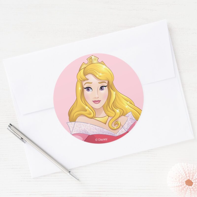 Sleeping Beauty Princesses Rule Classic Round Sticker vinyl sticker, waterproof durable collectible sticker for laptop, phone, bottle, bike, notebook, helmet, and accessories.