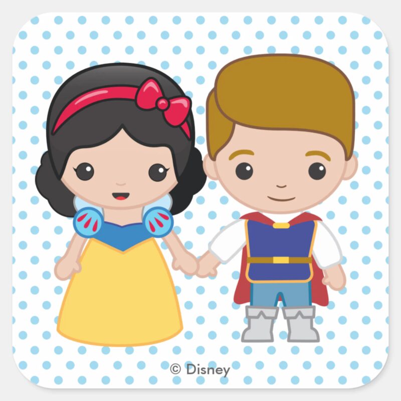 Snow White And Prince Charming Emoji Square Sticker vinyl sticker, waterproof durable collectible sticker for laptop, phone, bottle, bike, notebook, helmet, and accessories.