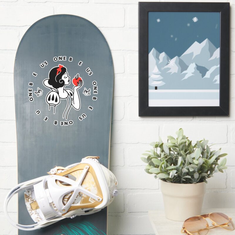 Snow White Outline Graphic Just One Bite Sticker vinyl sticker, waterproof durable collectible sticker for laptop, phone, bottle, bike, notebook, helmet, and accessories.