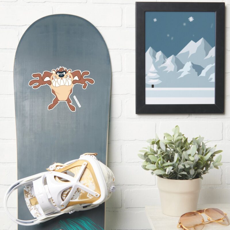 TAZ™ Clenched Tooth Grin Sticker vinyl sticker, waterproof durable collectible sticker for laptop, phone, bottle, bike, notebook, helmet, and accessories.