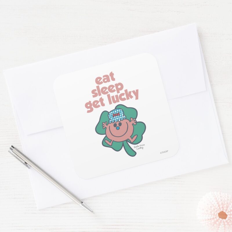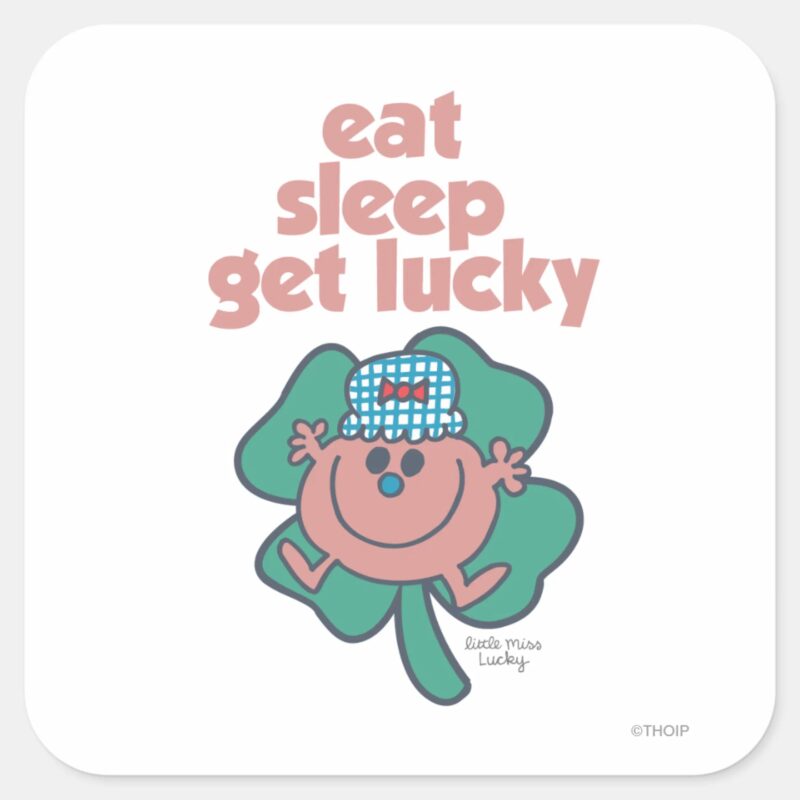 Little Miss Luckys Motto Green Clover Square Sticker vinyl sticker, waterproof durable collectible sticker for laptop, phone, bottle, bike, notebook, helmet, and accessories.